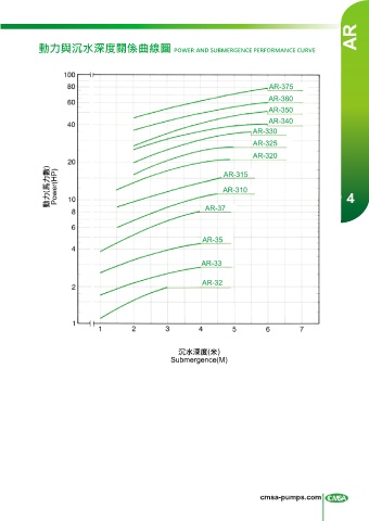 AR 動力與沉水深度關係曲線圖 POWER AND SUBMERGENCE PERFORMANCE CURVE 4 cmsa-pumps.com