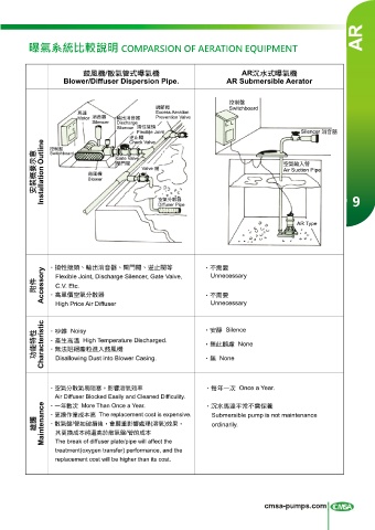 AR 曝氣系統比較說明 COMPARSION OF AERATION EQUIPMENT 9 cmsa-pumps.com