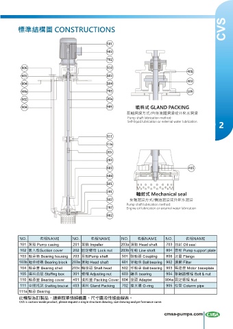 111 中間托架 Shafting bracket 403 填料 Gland Packing 702 擋水環 O-ring 905 柱管 Column pipe