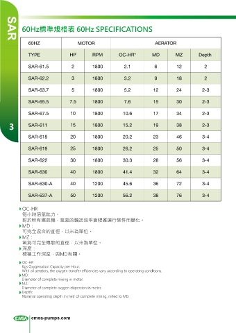 60Hz標準規格表 60Hz SPECIFICATIONS