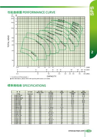 SPS 性能曲線圖 PERFORMANCE CURVE 2 標準規格表 SPECIFICATIONS cmsa-pumps.com