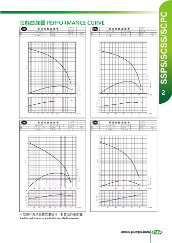 性能曲線圖 PERFORMANCE CURVE SSPS/SCSS/SCPC 2 可依客戶需求改變泵浦規格、材質及外型配置。 Specified performance or specification is available on request. cmsa-pumps.com