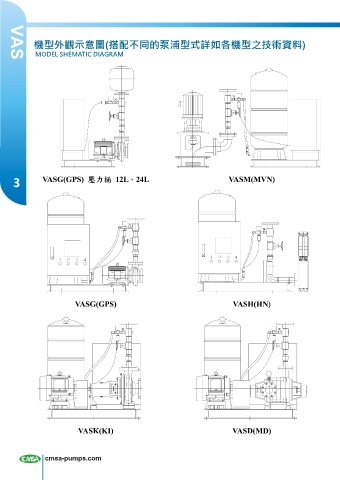 機型外觀示意圖(搭配不同的泵浦型式詳如各機型之技術資料) MODEL SHEMATIC DIAGRAM VAS 3 cmsa-pumps.com